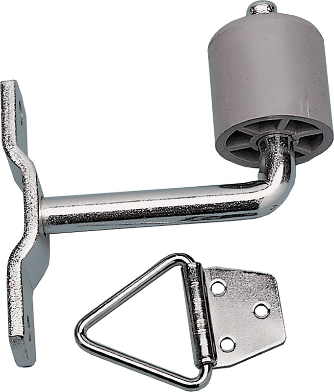 Seinään kiinnitettävä vastinkumilla varustettu toppari / aukipitolaite. Materiaali / Viimeistely: \tsinkitty teräs / kumi Mitat: \t115 x 85 mm