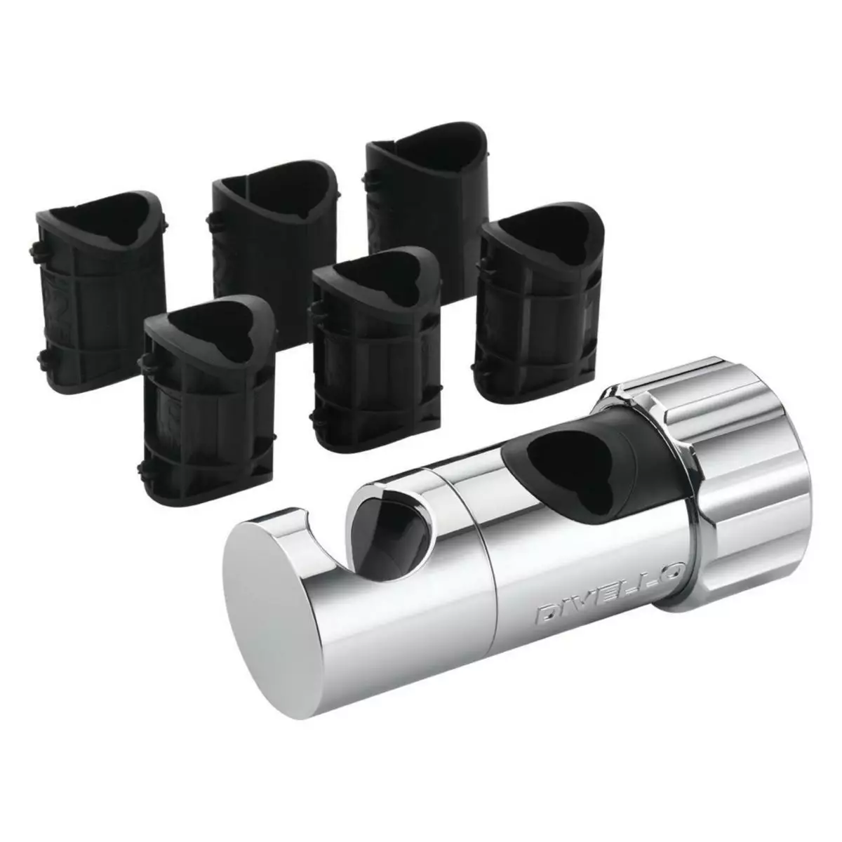 Yleismallinen liukukappale (käsisuihkun pidike) suihkuletkuun (Ø 18–25 mm). DIVELLO ORIGINAL™: Kaikkien vesikalusteiden kanssa yhteensopiva ja