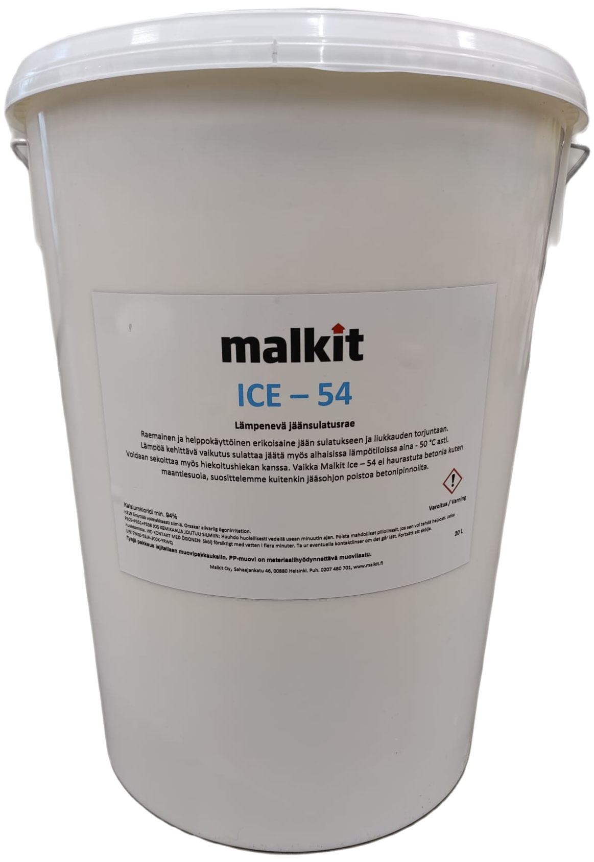 Malkit Ice-54 on kalsiumkloridipohjainen aine. Sulattaa jäätä myös alhaisissa lämpötiloissa aina -50 °C asti. Tuote on ympäristöystävällinen