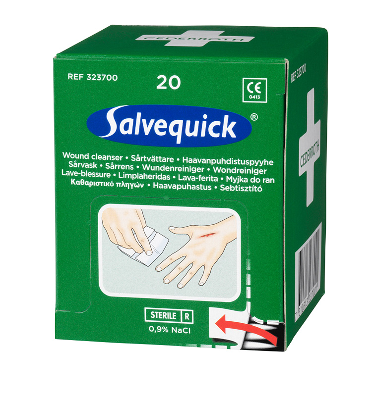 Salvequick haavapyyhetäydennys Cederroth Ensiapuasemaan (REF 490920). Korvaa vanun ja puhdistusaineen, kätevä ja helppo käyttää. Puhdistusaineena steriili, fysiologinen keittosuolaliuos.... Lue lisää