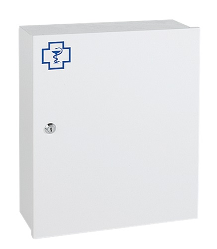 Sylinterilukolla varustettu kaappi lääkkeiden ja ensiaputarvikkeiden turvalliseen säilytykseen kotona.