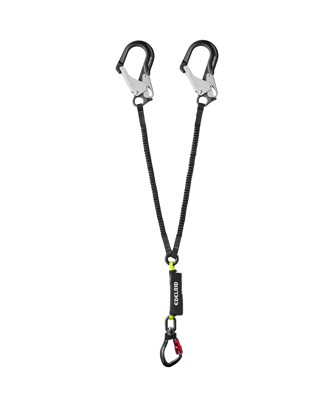 Nykäyksenvaimenninliitosköysi työkäyttöön. Kaksihaarainen Y-malli, jossa venyvät stretch haarat. Pituus 1,3 m per haara. Molempien haarojen päissä