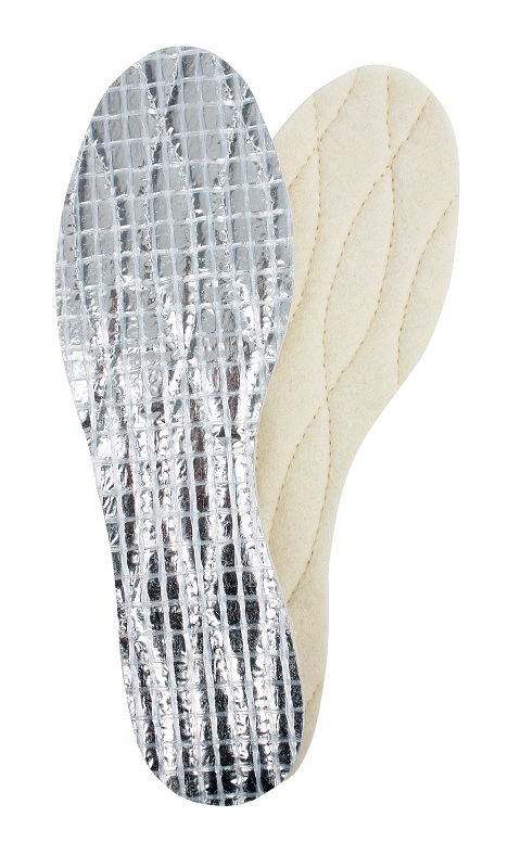 Lämmin talvipohjallinen, jonka alumiinikerros eristää hyvin kengän pohjan kautta tulevaa kylmyyttä vastaan.