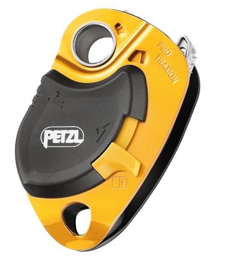 Suosittelemme Pro Traxion taljapyörän kiinnittämiseen kiertymisen estävää Petzl Swivel Open leikaria (P58SO) tai Petzl OK TriactLock lukkosulkurengasta (M33A TL)
