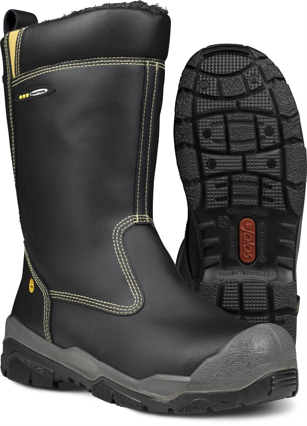 Erittäin lämmin turvasaapas kylmiin työympäristöihin. Suojausluokka S3 HRO. PU-pinnoitettu nahkapäällinen, jossa on Kevlar®-saumat, jotka kestävät
