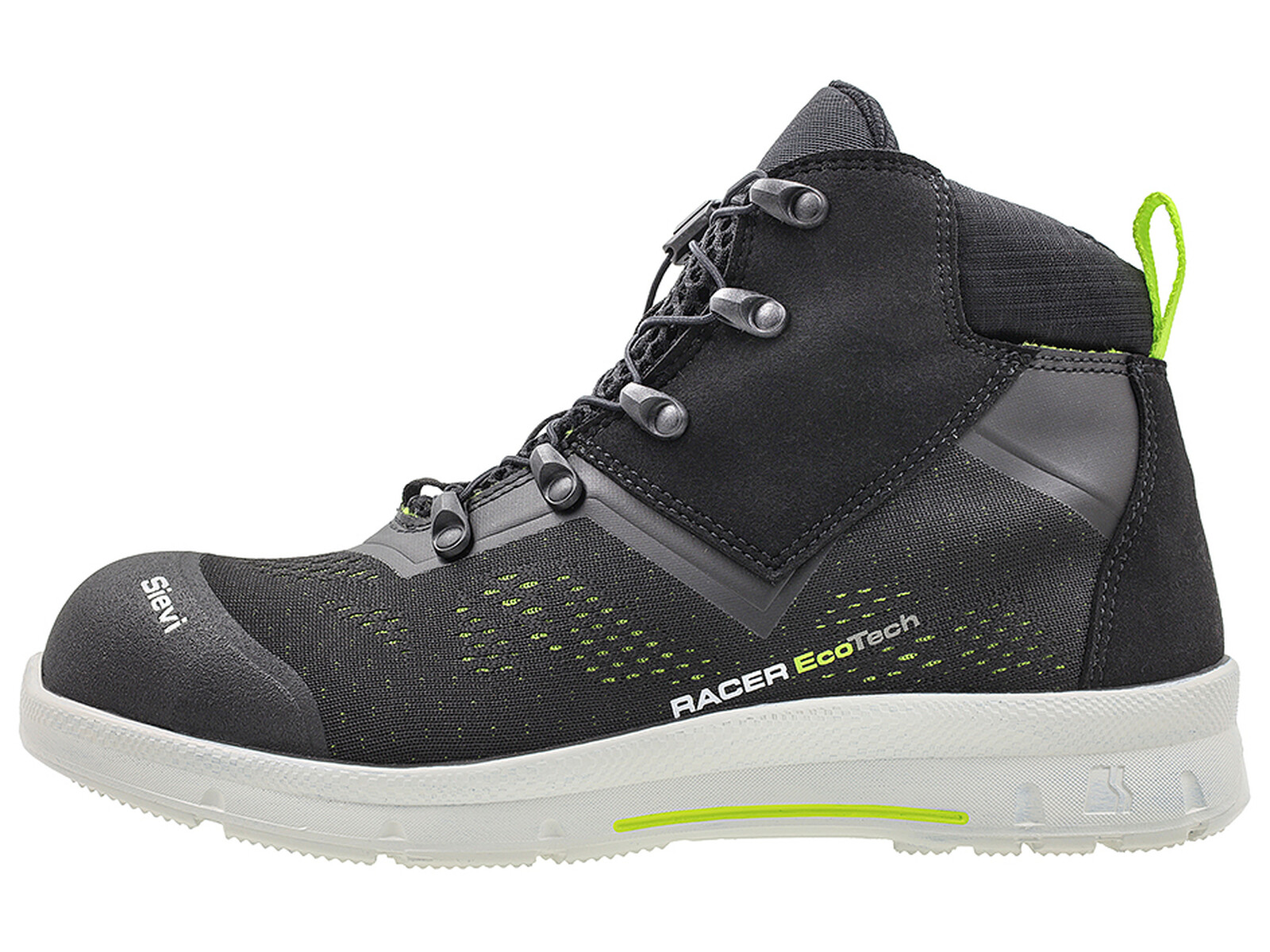 Racer EcoTech H nilkkureissa on maksimoitu kierrätysmateriaalien käyttö. Turvajalkineissa on alumiinivarvassuoja ja tekstiilinaulasuoja. Päällinen on