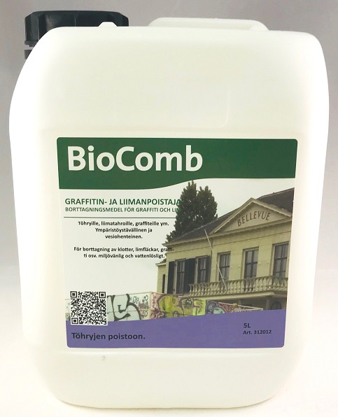Biocomb Graffitin- ja liimanpoistaja Vesiohenteinen tuote, joka on tarkoitettu töhryjen poistamiseen. Sopii töhryjen, vahojen, graffittien, kynänjälkien, musteen, purukumin, liimatahrojen ja... Lue lisää