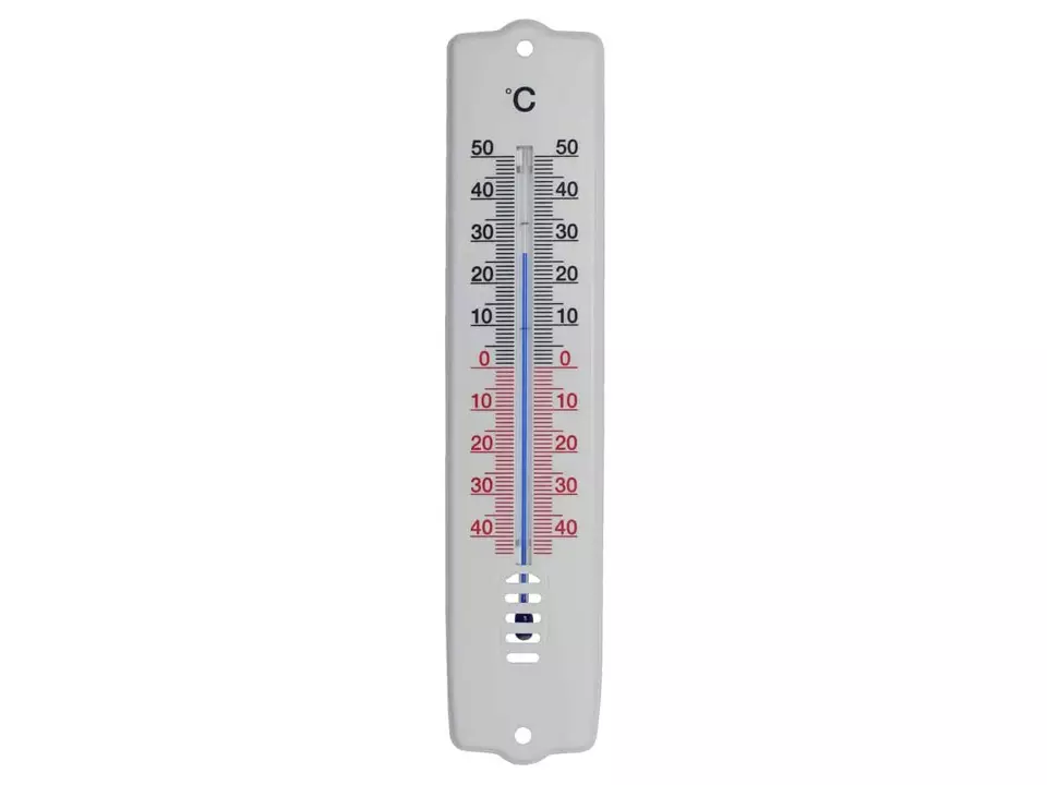 Perinteinen sisälämpömittari, jossa lämpötila-asteikko -30 °C – +50°C.
