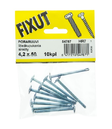 Litteäkupukantainen poraruuvi 4,2x50 mm 10 kpl / pss