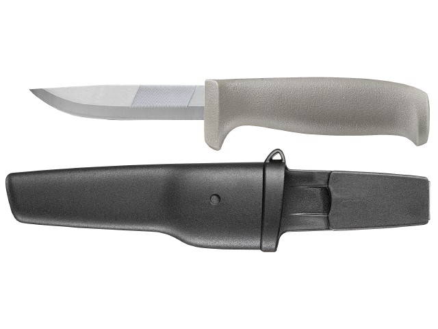 Putkiasentajien käyttöön tarkoitetussa puukossa on viila, jolla katkaisukohdan rosot on helppo puhdistaa. Ainutlaatuisen kiinnitysmekanismin ansiosta tuppi ei irtoa vahingossa työvaatteen napista, vaikka se onkin helppo ottaa