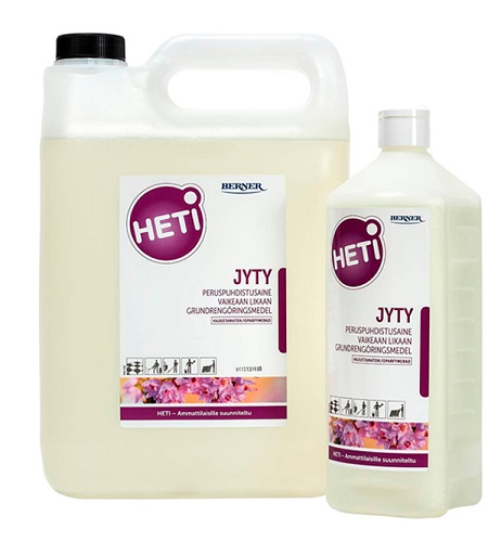 HETI Jyty on voimakkaasti likaantuneiden pintojen puhdistusaine, joka sopii myös lattioiden pintapesuun.
